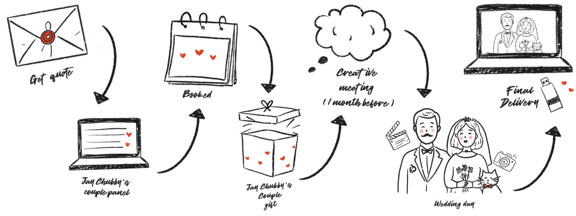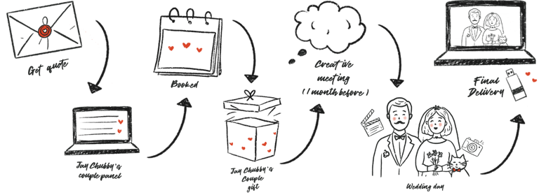 From your first message to the moment you hold your wedding film, here’s how we bring your story to life.